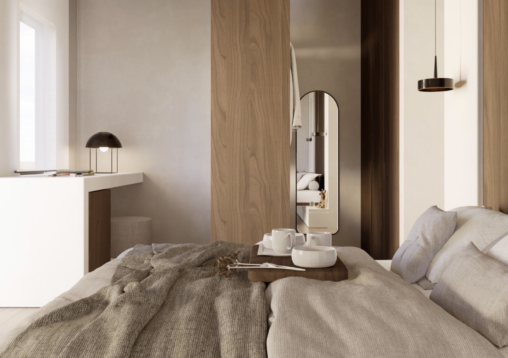 – One bedroom and bathroom on semi-first floor.