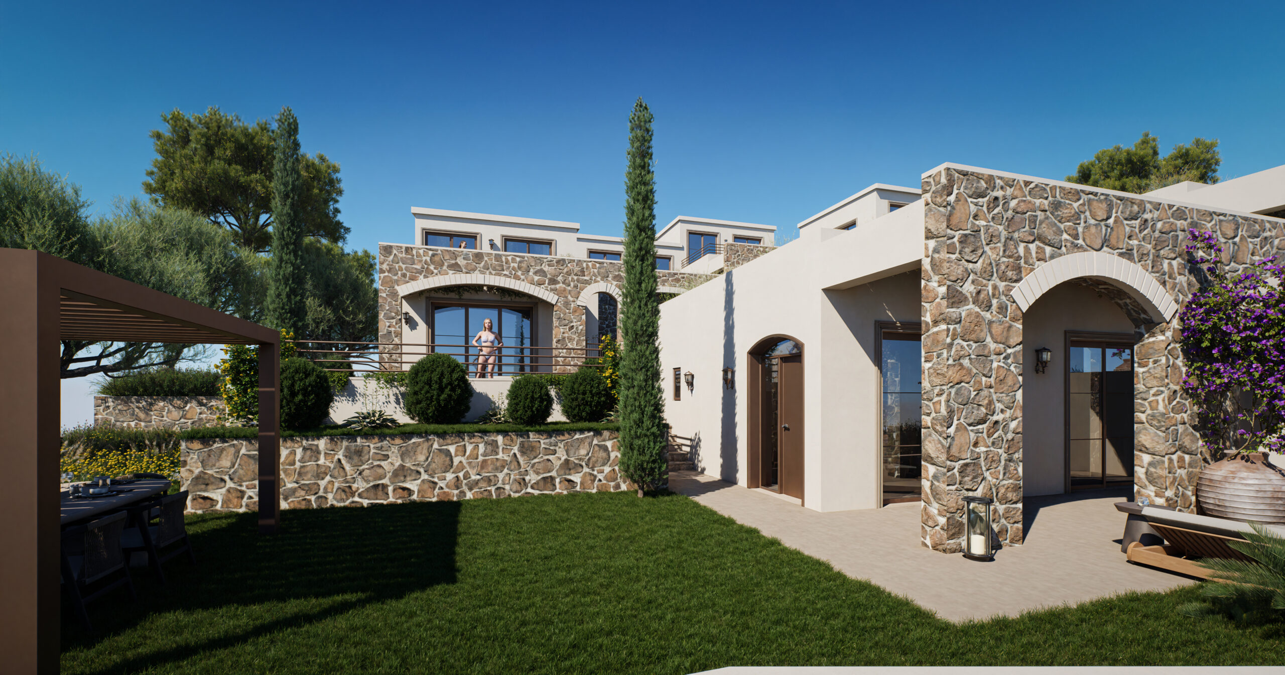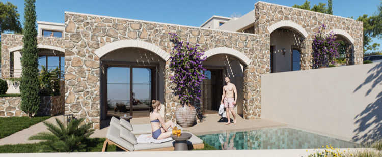 An exclusive boutique collection of 6 luxury villas is for sale in Plaka, Chania. They seamlessly combine modern elegance with traditional Cretan craftsmanship. Overlooking the stunning panoramas of Souda Bay and Almyrida, these residences offer a serene escape designed for discerning international buyers seeking beauty, comfort, and timeless sophistication. Constructed with natural stone, white plaster façades, arched doorways, and classical iron balustrades, each villa blends seamlessly into the surrounding landscape—offering both rustic charm and contemporary refinement. The location is excellent, with great seaviews and walking distance to the villagesquare and beach. Prices start from 315.000 for a 2 bedrooms villa and 395.000 euro for a 3-bedroom villa.