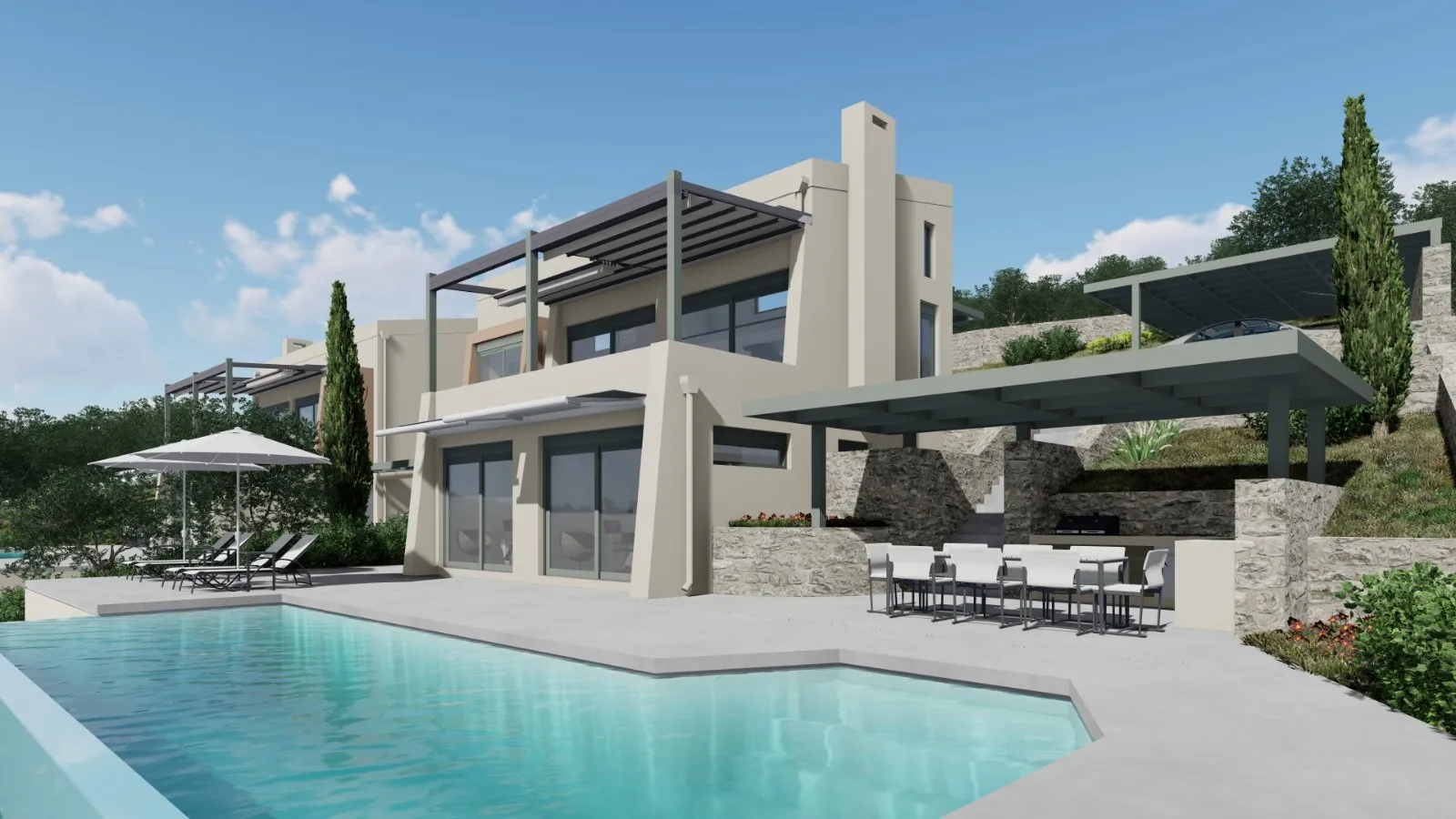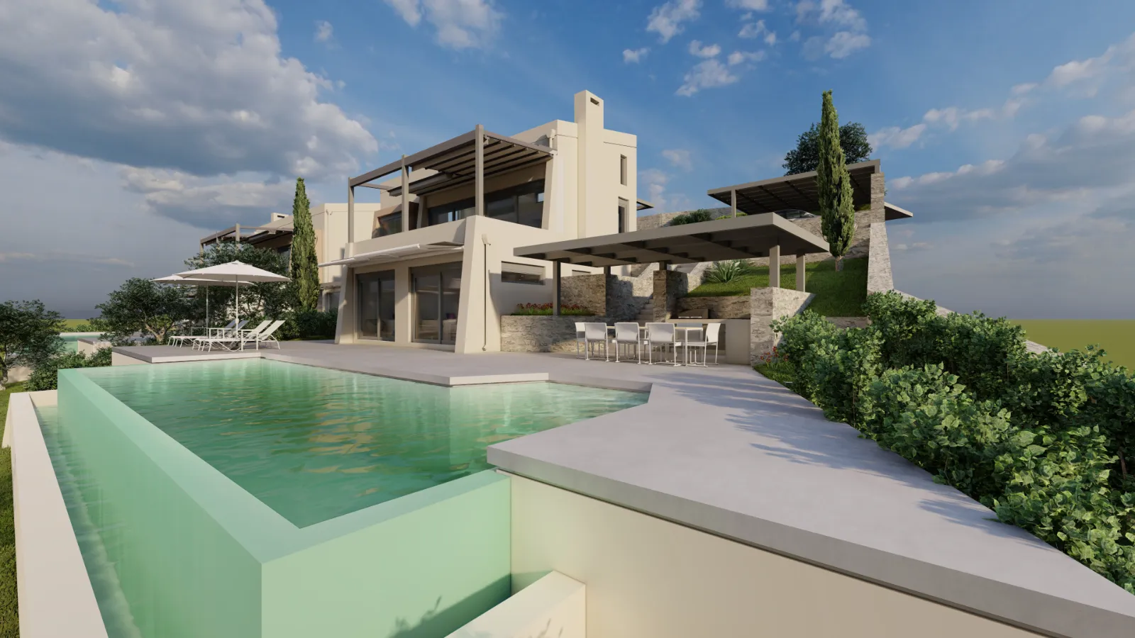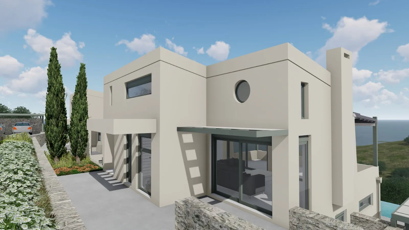 This luxurious villa, currently under construction, spans 186 square meters and is situated in the picturesque area of Lygias-Katounas. Set on a generous plot of 1,850 square meters at an elevation of approximately 100 meters, this property offers stunning sea views and a sloped landscape. The villa features a façade facing the provincial road, providing easy access with about 40 meters of street frontage. Buyers have the opportunity to choose materials for the construction after negotiation.