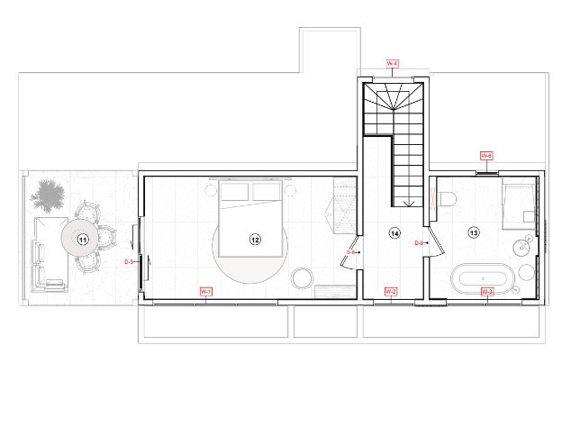 Large-format Spanish ceramic tiles, underfloor heating, and a fireplace