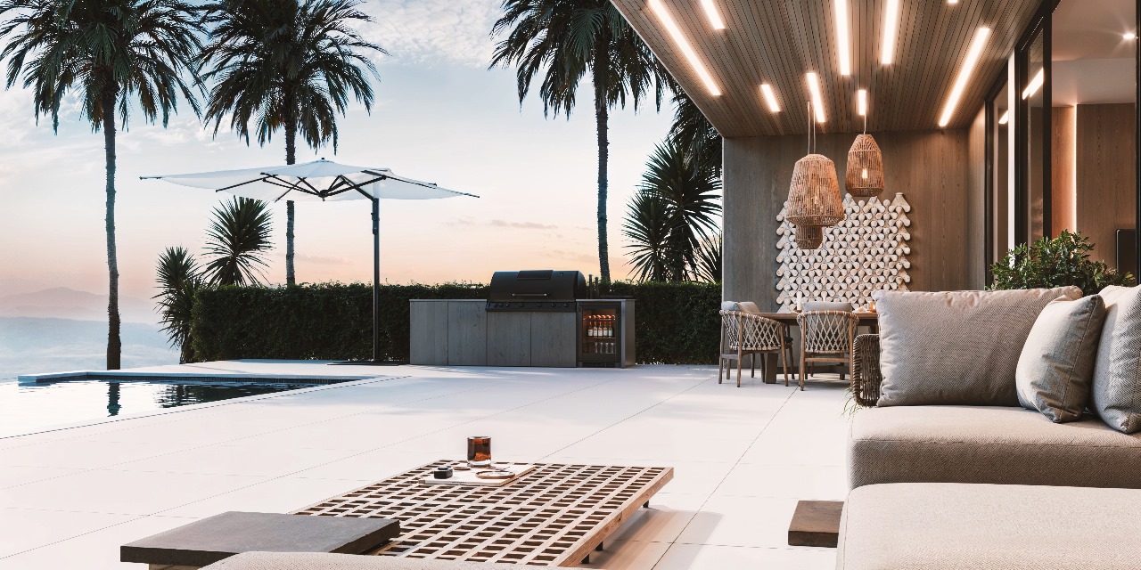 Built-in outdoor kitchen and BBQ area, ideal for entertaining