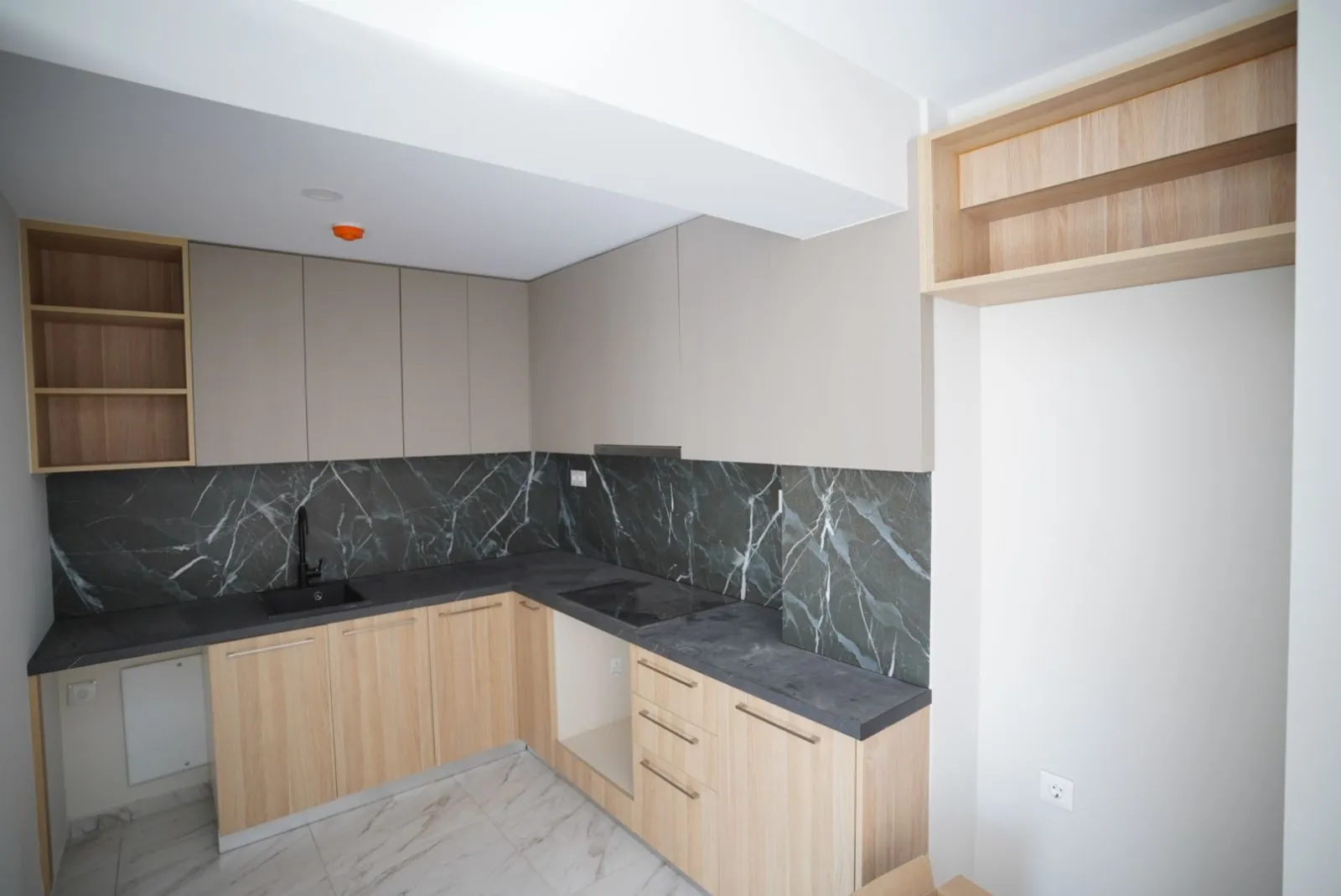 – Open layout connecting kitchen to living room.