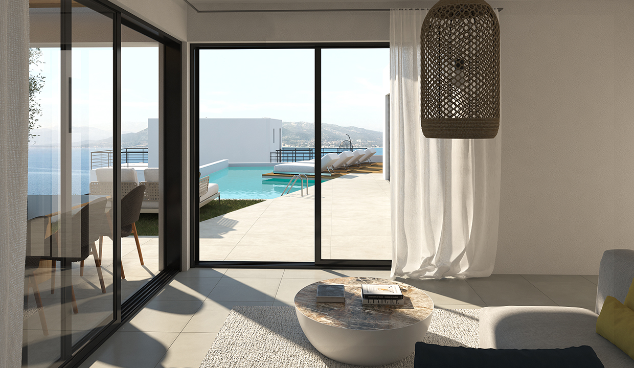 Located just 120 meters from the sea and only 200 meters from the town center, Villa 21 offers stunning unlimited sea views and convenient access to local amenities. The total cost of this turnkey project is €605,000, which includes stylish furnishings.