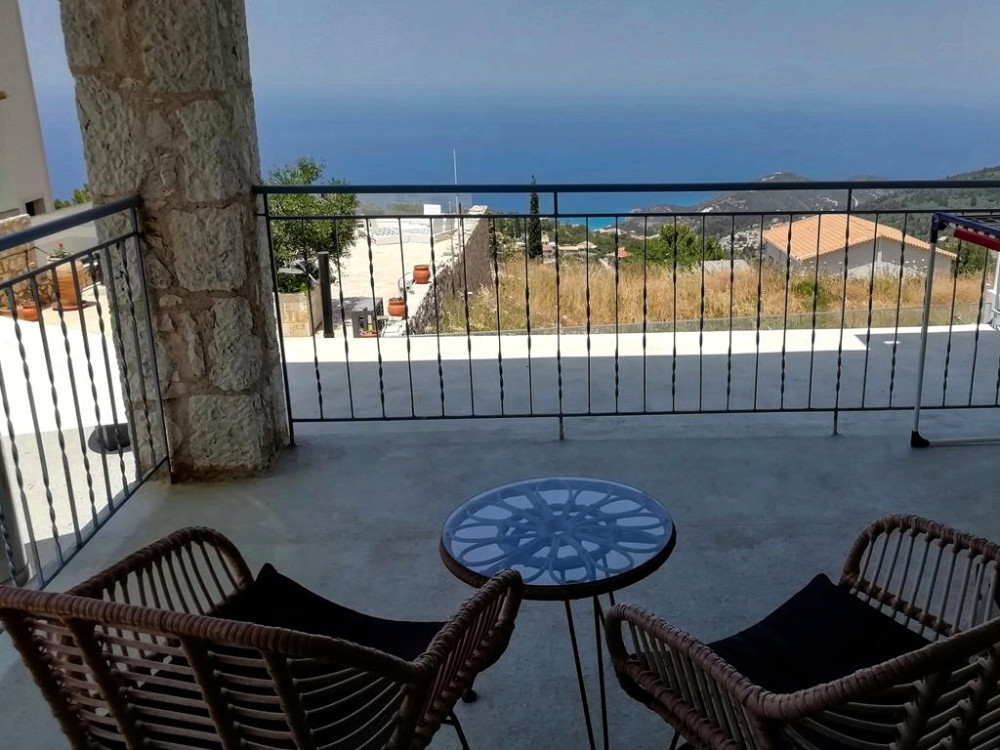 This lovely 4-bedroom villa is located in the picturesque village of Kalamitsi, perched on the West Coast mountainside. With a generous land size of 1,060 m² and a living space of 94 m², this property offers breathtaking uninterrupted views of the Ionian Archipelagos and stunning sunsets. The villa features an open-plan living area with a fireplace, leading to a spacious terrace that is ideal for entertaining or relaxing by the heated swimming pool.